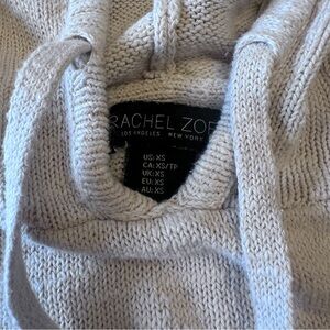 Elegant cream knit hoodie by Rachel Zoe. Features a cozy drawstring hood.