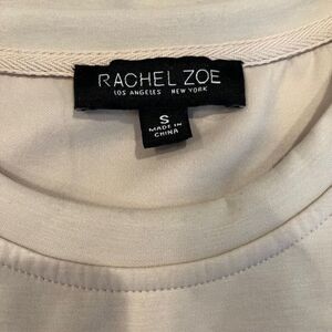 Rachel Zoe Creamy Beige Cap Sleeve Dress with Shoulder Pads Stretchy Size Small. Excellent condition. See photos for details and measurements. Pullover, crewneck, tan, beige, ecru, neutral, great for layering, soft and stretchy, dinner, office, date night, travel, vacation, all season, spring, fall, winter, summer, brunch, shower, party, flattering