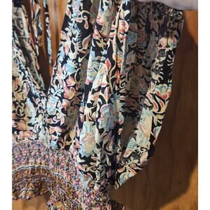 Rachel Zoe Crop Top Women's XL Low Cut V-Neck Smocked Floral Bohemian BohoStyle