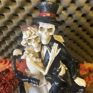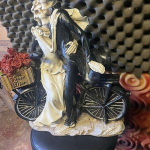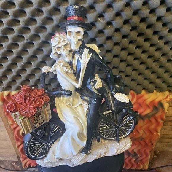 Rachel Zoe Day of the Dead Love Never Dies Bike Couple Skeleton Statue Figurine