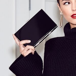NEW Rachel Zoe Deco Inspired Glossy Black Clutch. Still covered with the protective film. Only removed from original box for photos.