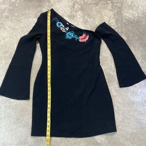 Rachel Zoe Dress 4 Black Harper Floral Sequins Off Shoulder Bell Sleeve Mini