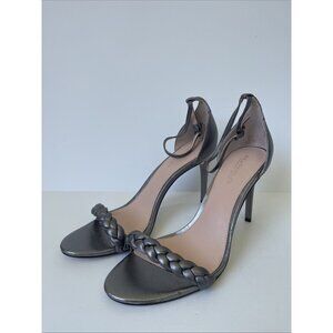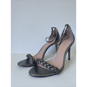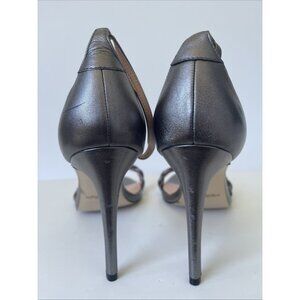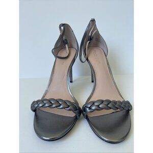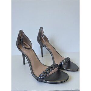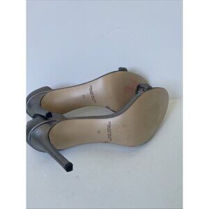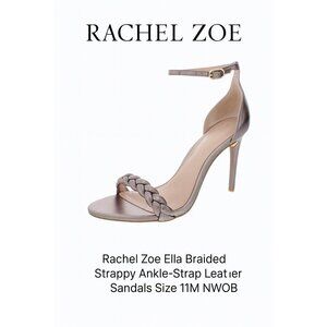Rachel Zoe Ella Silver Leather Strappy Heeled Sandals Size 11M NWOB Metallic Ope