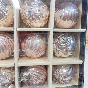 Rachel Zoe Embossed Pale Pink Blush Mercury Glass Ornaments Set of 12 New Box