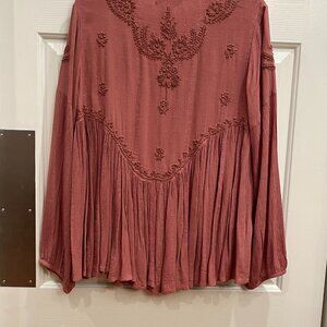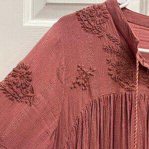 Rachel Zoe Embroidered Tunic Top Peasant Blouse Dusty Rose Boho Women's Size M