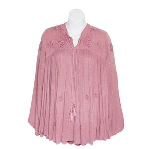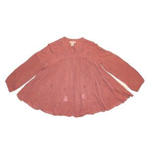 Rachel Zoe Embroidered Tunic Top Size M Peasant Blouse Flowy Boho Babydoll Shirt