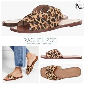 Rachel Zoe Farrow Cross Front Leopard Slides Sandals animal print mules flat 6.5