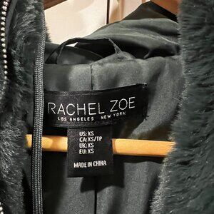 Rachel Zoe Faux Fur Bomber Jacket with Hood – Forest Green | Size XS