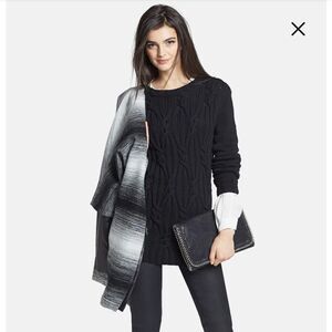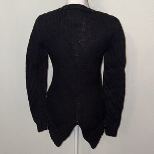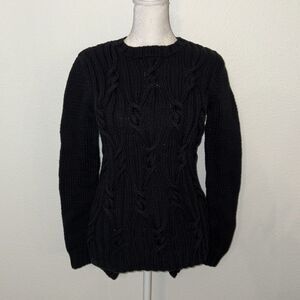 Thick, cable knit sweater with pointed “tails” backside. Only ever dry cleaned.