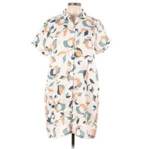 Rachel Zoe Floral Patterned Linen Short Sleeve Button Down Shirt Dress