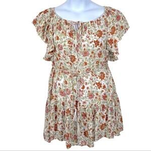 Rachel Zoe Floral Print Flutter Sleeve Tiered Ruffle Mini Dress Size Small