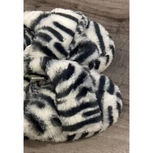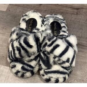 Rachel Zoe Fluffy Slide Slippers Womens 6.5-7.5 Black White Zebra Print Faux Fur