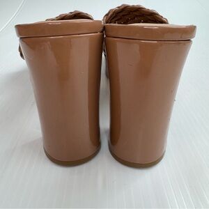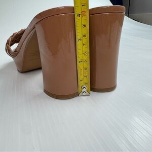 Step out in style with these chic tan woven platform heels. Perfect for any occasion, these shoes offer both comfort and elegance.