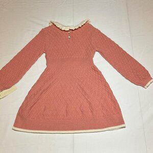 Rachel Zoe Girls Size 3T Pink Long Sleeve Peter Pan Collar Sweater Dress NWT