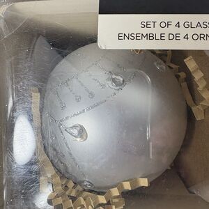 Rachel Zoe Glass Ornaments Christmas Tree Decor Silver Set of 4 F2