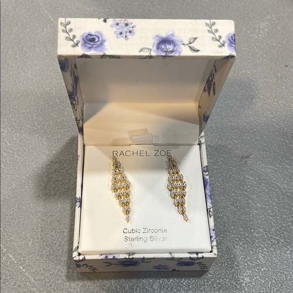 Elegant gold earrings by Rachel Zoe, featuring sparkling cubic zirconia. Perfect for adding a touch of glamour to any outfit.
