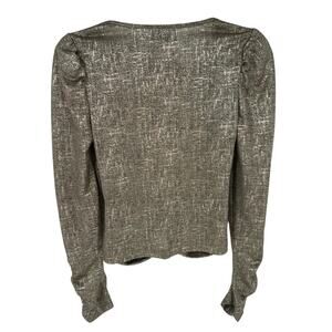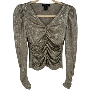 Rachel Zoe Gold Metallic Ruched V-Neck Blouse Long Sleeve Party Holidays S