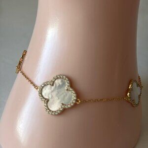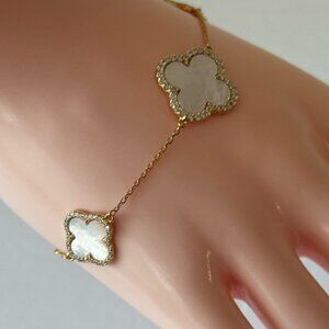 Rachel Zoe Gold Plated 925 Ster Silver Revers Bracelet Pave 3 Clover Moth OPearl