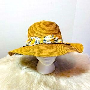 Rachel Zoe Golden Women's Beach Sun Hat with Floral Head Band NWT