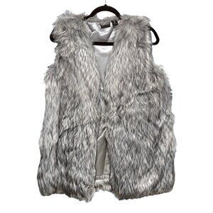 Rachel Zoe Gray Sleeveless Satin Lining Faux Fur Vest Medium