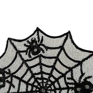 Rachel Zoe Halloween Spider Web Beaded Placemat Charger 15in Black & White