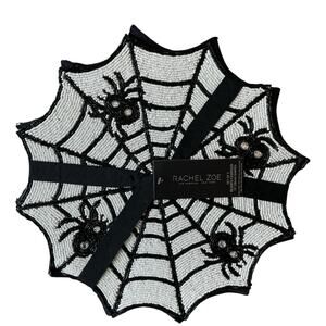Rachel Zoe Halloween Spider Web Beaded Placemat Charger 15in Black & White NEW