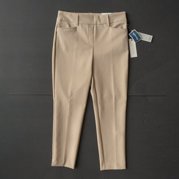 Rachel Zoe High Rise Slim Leg khaki Pant Slim Straight Minimal Office Trouser, size 6. These Rachel Zoe khaki trousers are a crop ankle fit with a minimal office wear style that looks tailored, fitted, and professional.