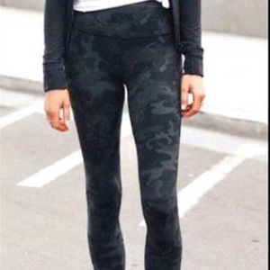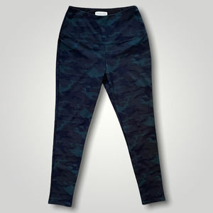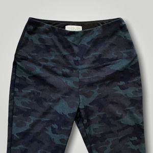 Rachel Zoe High Waisted Ponte Leggings in Blue Camouflage -- soft & stretchy ponte fabric in a blue camo pattern, wide 5" reinforced waistband for tummy control, ankle length. Preowned in like-new condition with no snags, stains, holes, or other signs of wear. Perfect for any season, spring, summer, fall, winter, exercise, sports, casual wear, loungewear, etc.