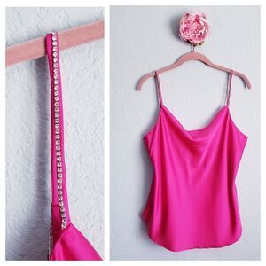 Rachel Zoe Hot Pink Drape Front Cami with Rhinestone Drip