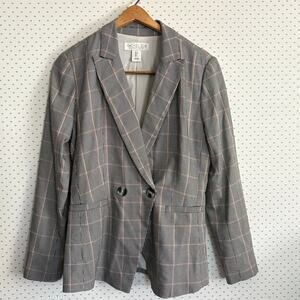 Rachel Zoe Houndstooth Blazer S Black Burgundy Jacket Academia Double Breasted