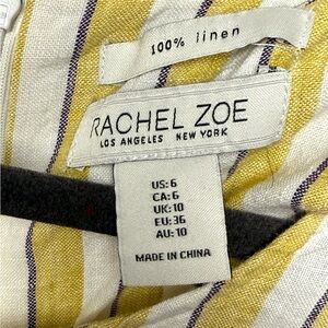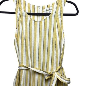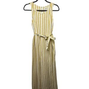 Rachel Zoe Jumpsuit Gold Yellow & White Stripe 100% Linen Cropped Wide Leg SZ 6