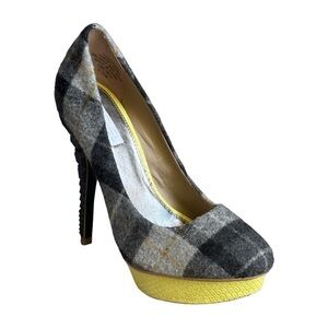 Rachel Zoe Keegan Gray Plaid Funky Stiletto Pumps Size 5.5