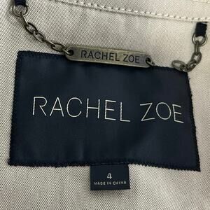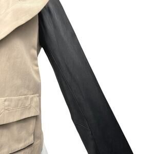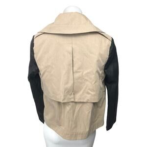 Rachel Zoe Khaki Black Leather Sleeves Double Breasted Blazer Coat Jacket Size 4
