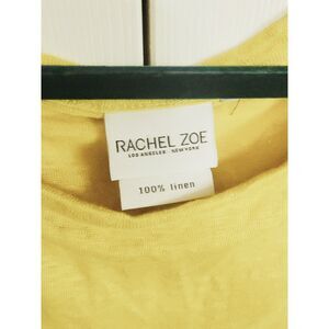 Rachel Zoe L 100% Linen Tee Women's Size Large Yellow Colorful Top V Neck SS