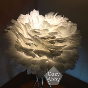 Rachel Zoe Lamp White Feather Steel Tripod Designer Table Lamp