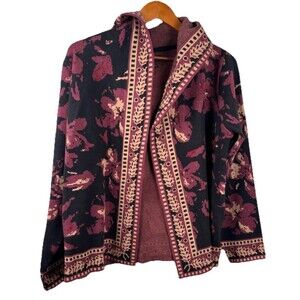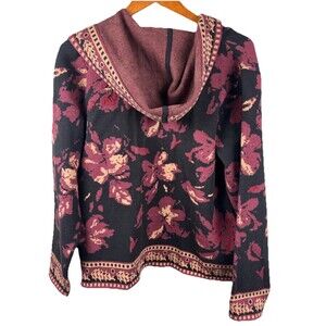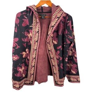 Rachel Zoe Large Hooded Jacket Sweater Long Sleeve Maroon Floral Pattern