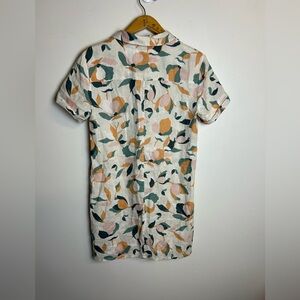 Rachel Zoe Lemons Novelty Print 100% Linen size S Button Down Natural Breathable