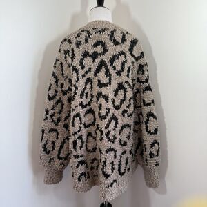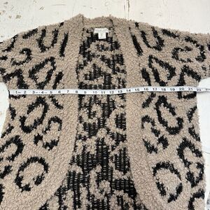 Rachel Zoe Leopard Print Cardigan S Open Front Sweater Jacket L Black Taupe