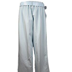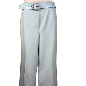 Rachel Zoe Light Blue Women's Flat Front Wide Leg Trousers with Pearl Belt Sz L