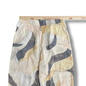 Rachel Zoe Linen Abstract Print Wide Leg Pants Elastic Waist Beige L