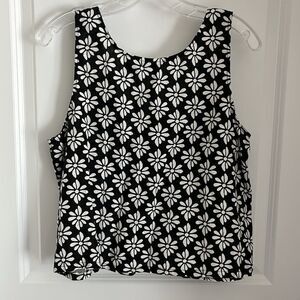 Rachel Zoe Linen Black and White Floral Crop Top