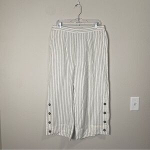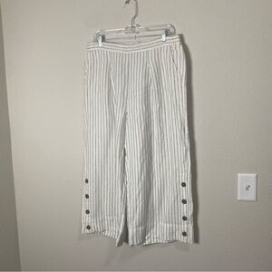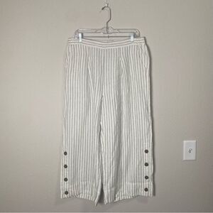 Rachel Zoe Linen Blend Wide Leg White Pinstripe Cropped Pants Women's Size XL