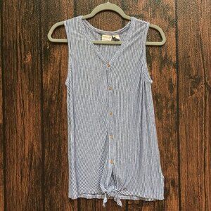 Rachel Zoe Linen Blue & White Stripe Tie Front Sleeveless Top Womens Size Large