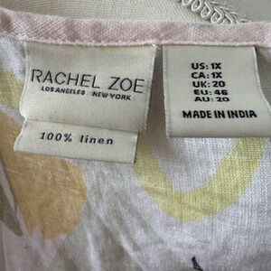 Rachel Zoe Linen Pastel Abstract Floral Popover Blouse 1X Spring Easter Summer