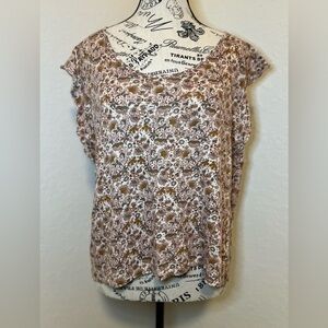 Rachel Zoe Linen Ruffled Cap Sleeve Blouse Ditzy Floral Print