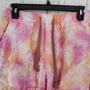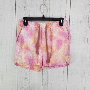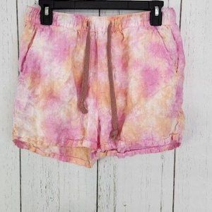 Rachel Zoe Linen Tie Dye Drawstring Shorts Pink Orange Size M