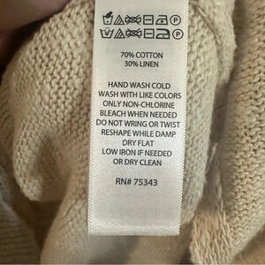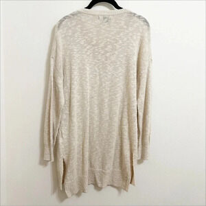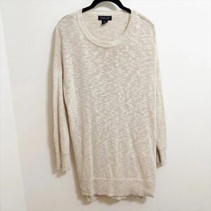 Rachel Zoe Long Line Natural Linen Cotton Blend Crew Neck Sweater Small