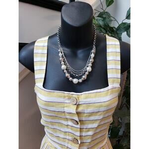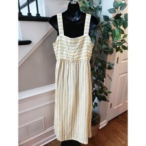 Rachel Zoe Long Maxi Dress Womens 6 Yellow Striped Linen Wide Strap Button Front