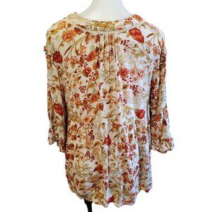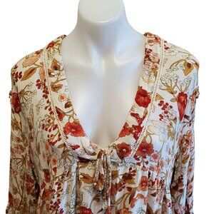 Rachel Zoe Med Floral Peasant Hippie V-Neck Blouse White Orange Ruffel Sleeve