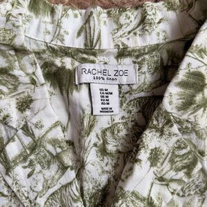 Rachel Zoe Medium Green Safari Jungle Print Linen Sleeveless Button Down Blouse